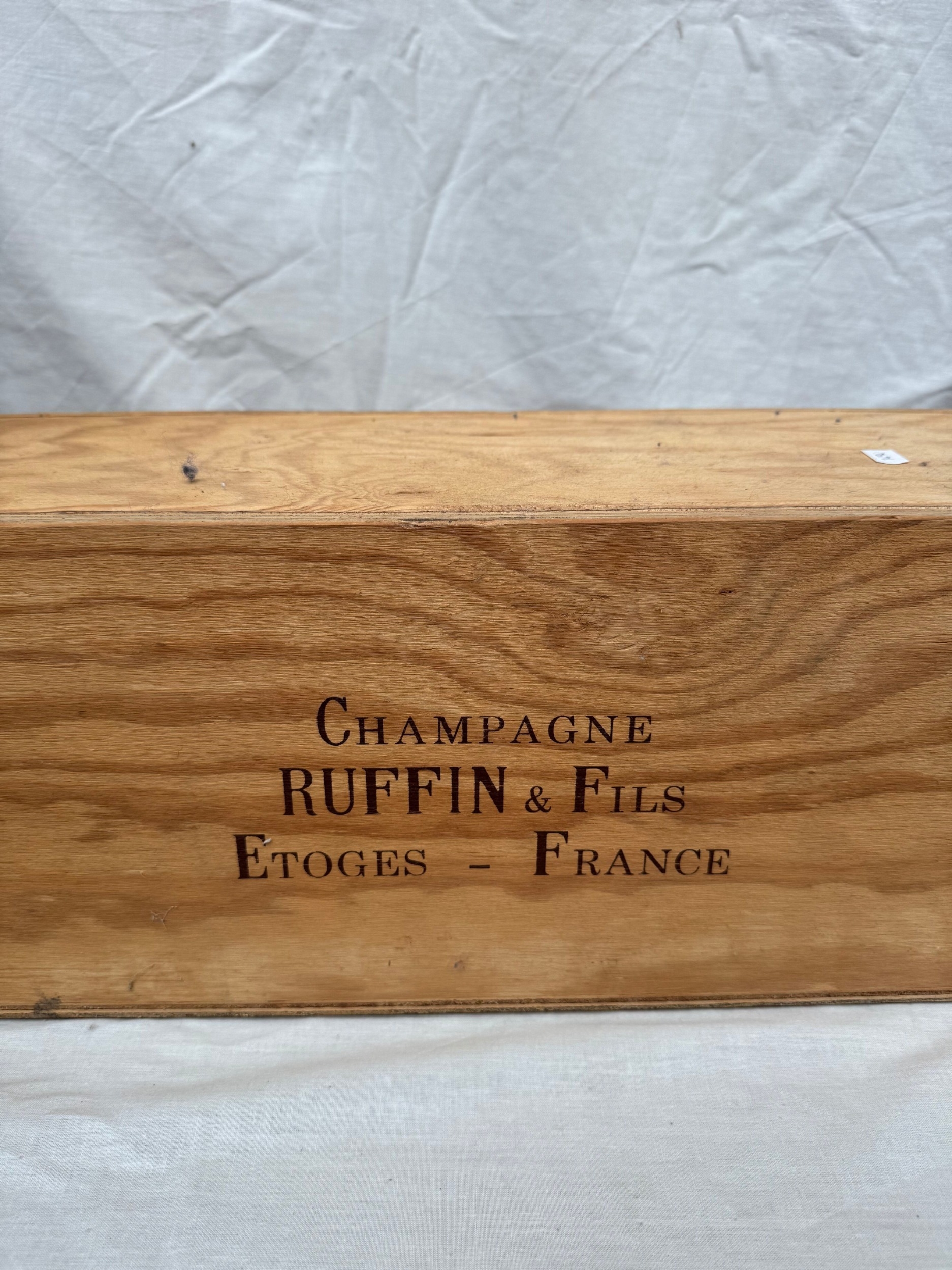 Large pine Methuselah case (empty) marked Champagne Ruffin & Fils, Etoges - France, 64cm high