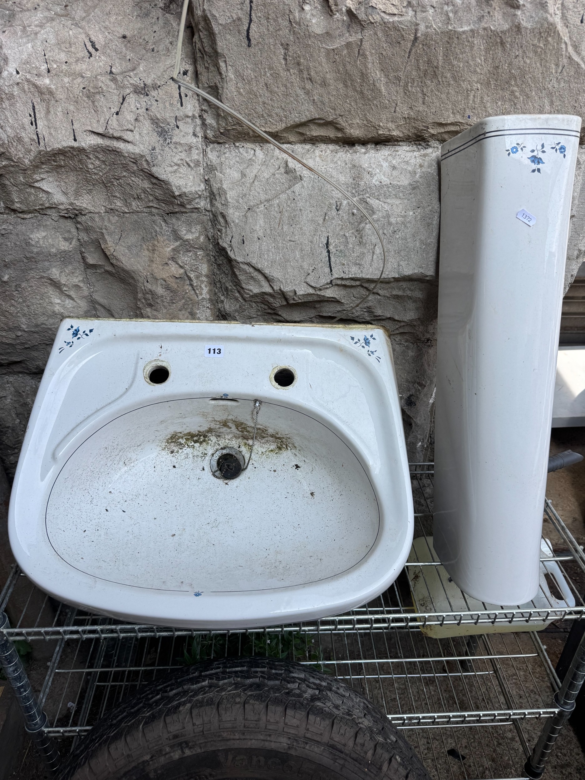 Vintage floral design ceramic hand basin / sink set
