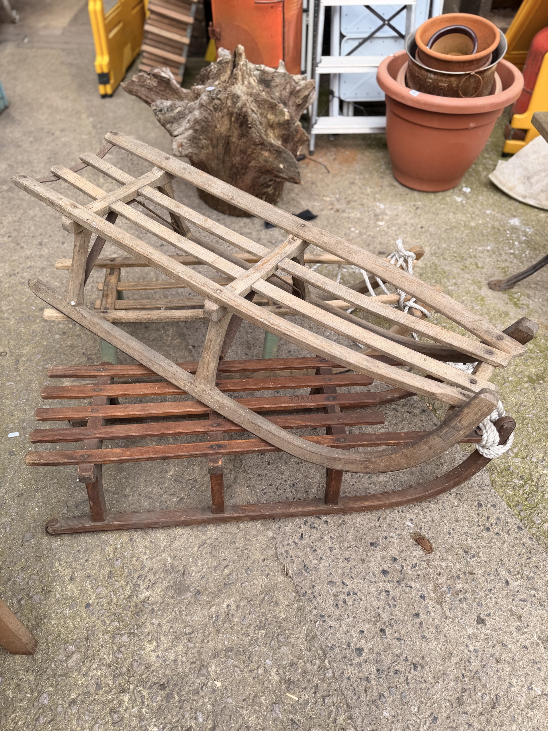 Three various vintage wooden sleighs (3)