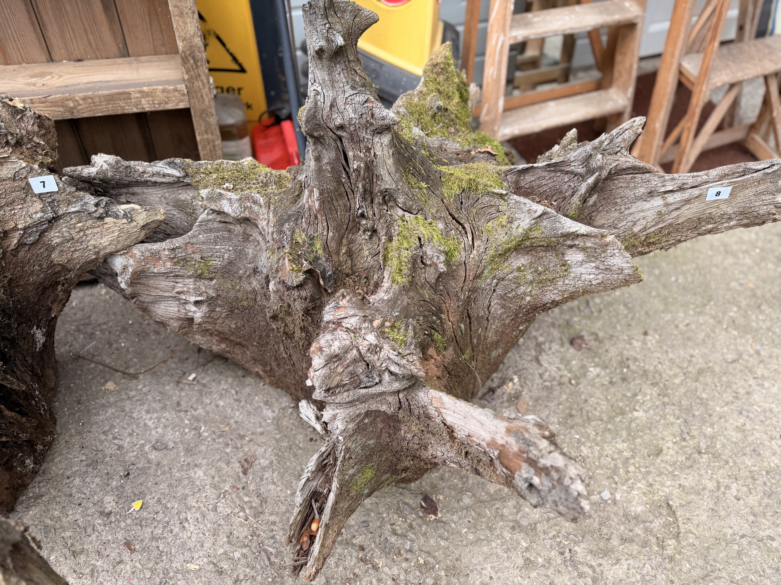 Old sculptural weathered natural tree stump, 118cm diameter maximum approx