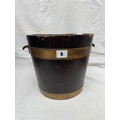 Antique coopered and lacquered oak bucket / pale, twin-handled, 23cm high, 25cm diameter
