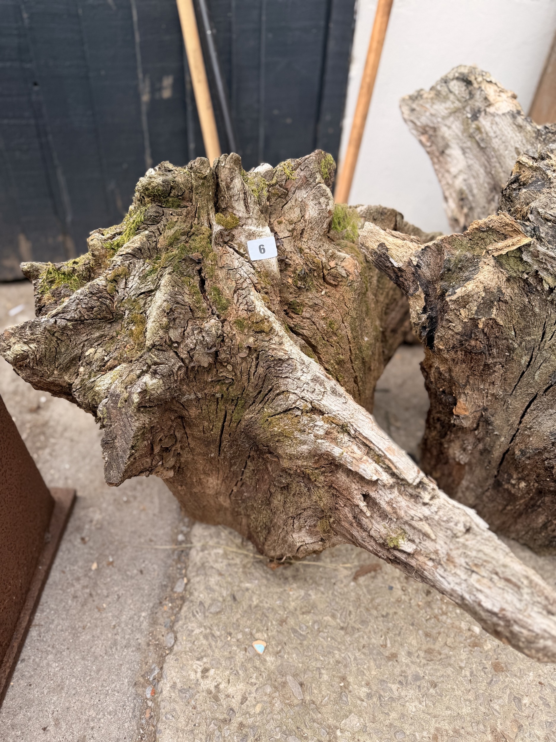 Old sculptural weathered natural tree stump, 67cm diameter maximum approx